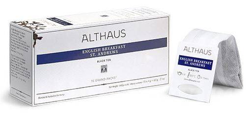Интересный, с первого взгляда простоватый купаж Althaus English Breakfast St.Andrews (Альтхаус Инглиш Брэкфест Сент Эндрюс) способен удивлять бесконечно. Это смесь чаев цейлонских плантаций с одним сортом индийского. Изобретатель Дрисдейл дал ему такое название не случайно – он действительно стал английским завтраком во многих домах Британии. Более поздние выводы говорят, что напиток идеален в любой время, хорош для добавления молока или сливок.